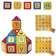 7TECH Magnetic Tiles 91 Pieces Set B 3D Blocks Building , For Toddler, Preschooler For Brain Development and Endless Fun Letter Cards Included