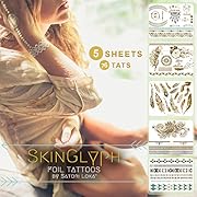 Flash Silver and Gold Metallic Removable Foil Temporary Tattoos by SkinGlyph (76 Tats)